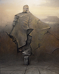 Size: 30 x 24 inches on stretched canvas; Available - $3500 Originally intended to be part of my personal collection; this work is now available because of our Covid19 pandemic. Partly inspired by works done by the master, Zdzislaw Beksinski. Without worry about stock or subject I just sat at the easel and let technique and composition run and then stopped as I reached my mental goals. More to come like this.