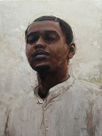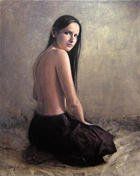 Size: 30 x 24 inches on stretched canvas; Available at The Argosy Gallery This was painted in studio and features my wife. The palette is somewhat limited and I tried to keep the forms simple and uncluttered. It took a number of months to complete this work and was painted using a multiple layer system which is best described as umber, warm hues, contours with correct values, areas of high color saturation, form development and finally highlights and detail.
